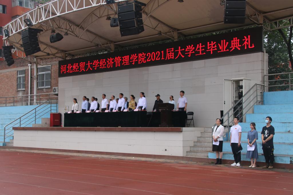 毕业典礼在庄严的国歌声中拉开序幕。