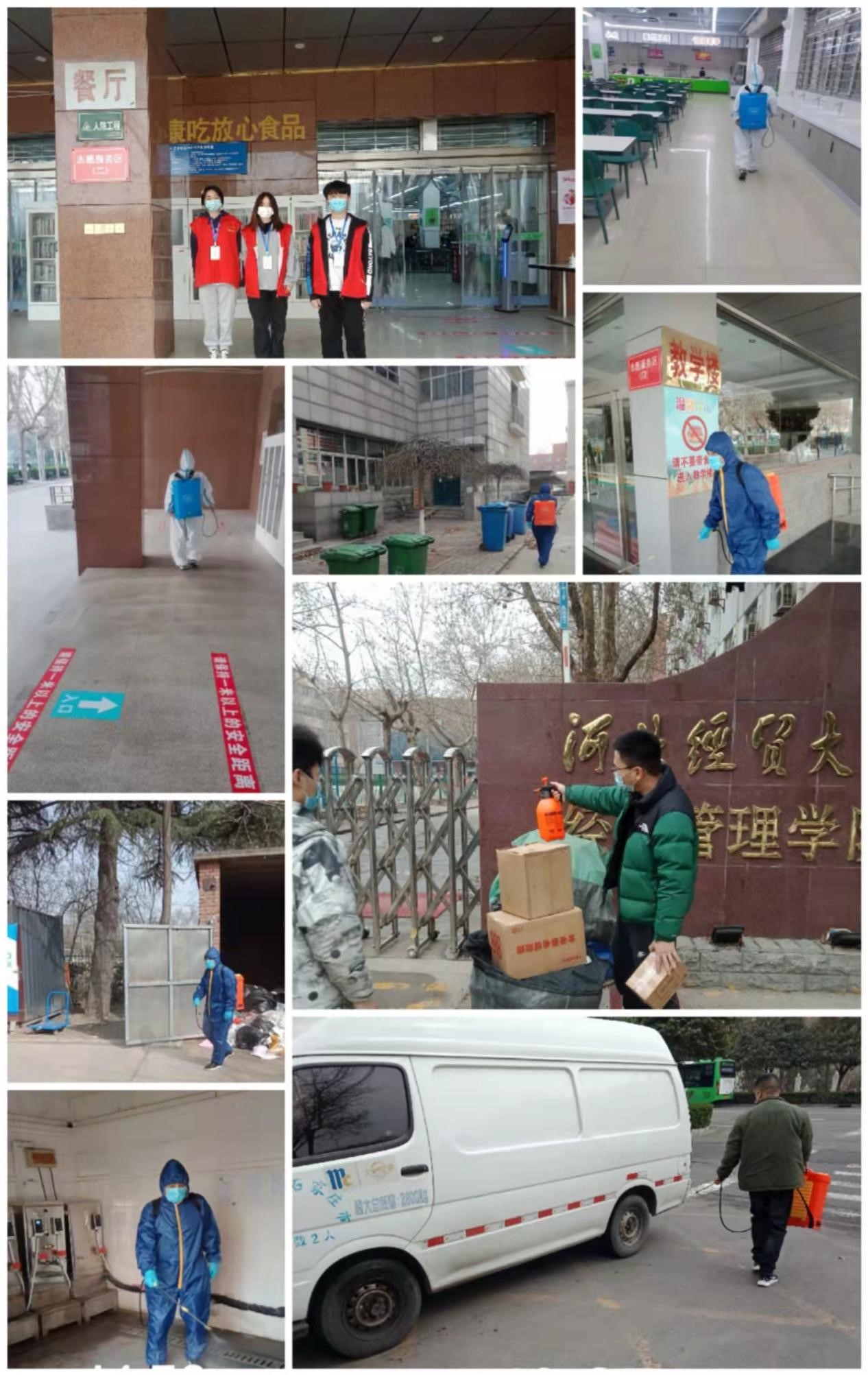 耿宏伟副主任带领西区校卫队员24小时值守,严格执行“六个一律”,对保障生活的车辆、物品进行严格的消毒作业;不间断地巡逻,及时处理突发事件。消杀工作关乎师生的健康,是重中之重。消杀工作人员严格执行制度,规范作业,守护校园一方平安对学校每一间教室、宿舍、卫生间、垃圾房等进行了全方位消杀,每天不少于两次,守护校园一方平安。食堂工作人员精心备餐,丰富花样品种,严把食品环境卫生关,保证让学生吃得安心,吃得舒服,吃得放心。保洁人员克服人员少,工作量大的困难,不计得失,确保校园环境卫生安全。