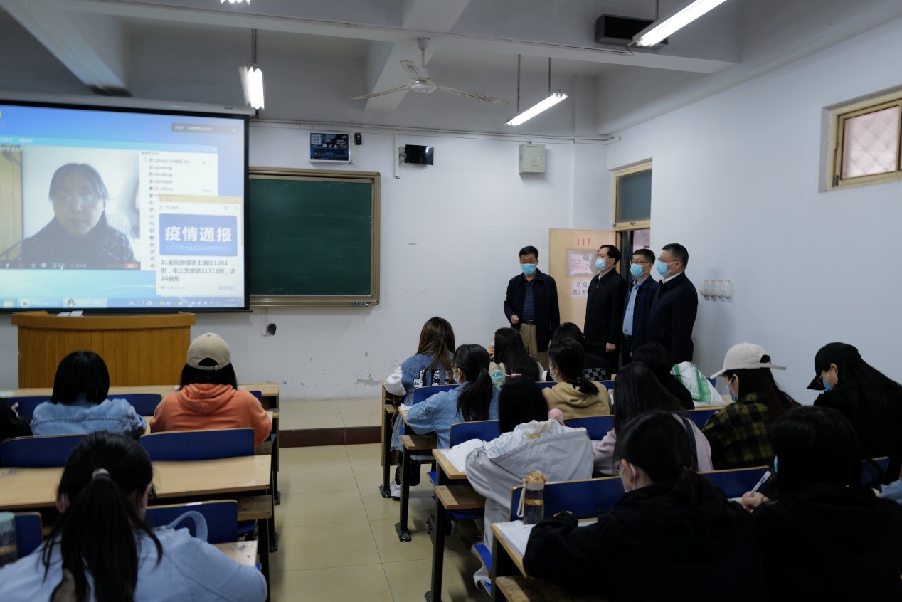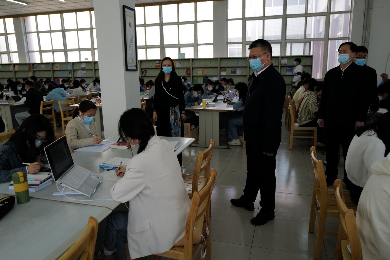 4月7日上午,我校党委副书记、校长刘兵、校领导刘建平、高晓峰、张秀山到Beat365官网检查指导线上教学、疫情防控、宿舍安全等工作,学校办公室、人事处负责人参加,学院全体领导班子、各系书记及相关工作人员陪同。