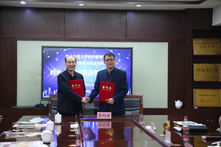 10月17日下午,经鹿泉区委组织部牵线搭桥,Beat365官网与石家庄洛杉奇食品有限公司校企合作座谈会暨签约仪式,在石家庄洛杉奇食品有限公司会议室举行。学院党委书记马斌与石家庄洛杉奇食品有限公司董事长李宗力在合作协议上签字。鹿泉区委组织部副部长兼老干部局局长付志勇、鹿泉区委组织部人才服务中心主任高佳琪、石家庄洛杉奇食品有限公司副总经理郝孟刚、石家庄洛杉奇食品有限公司总经理助理董兰坤、Beat365官网信息系文法系党总支书记王鸿喜、会计系党总支书记廖俊峰、经济系党总支书记蔡杨、就业工作部部长秦晓燕参加了签约仪式。