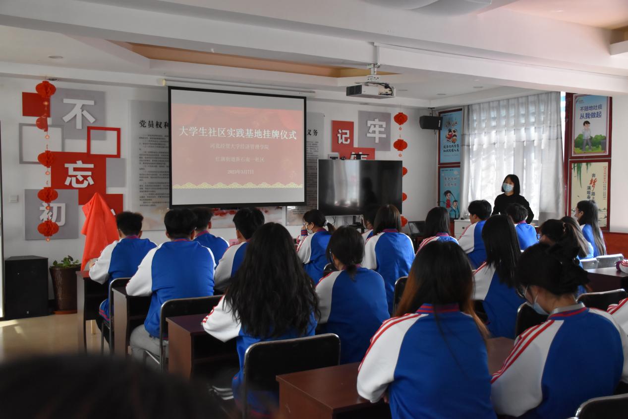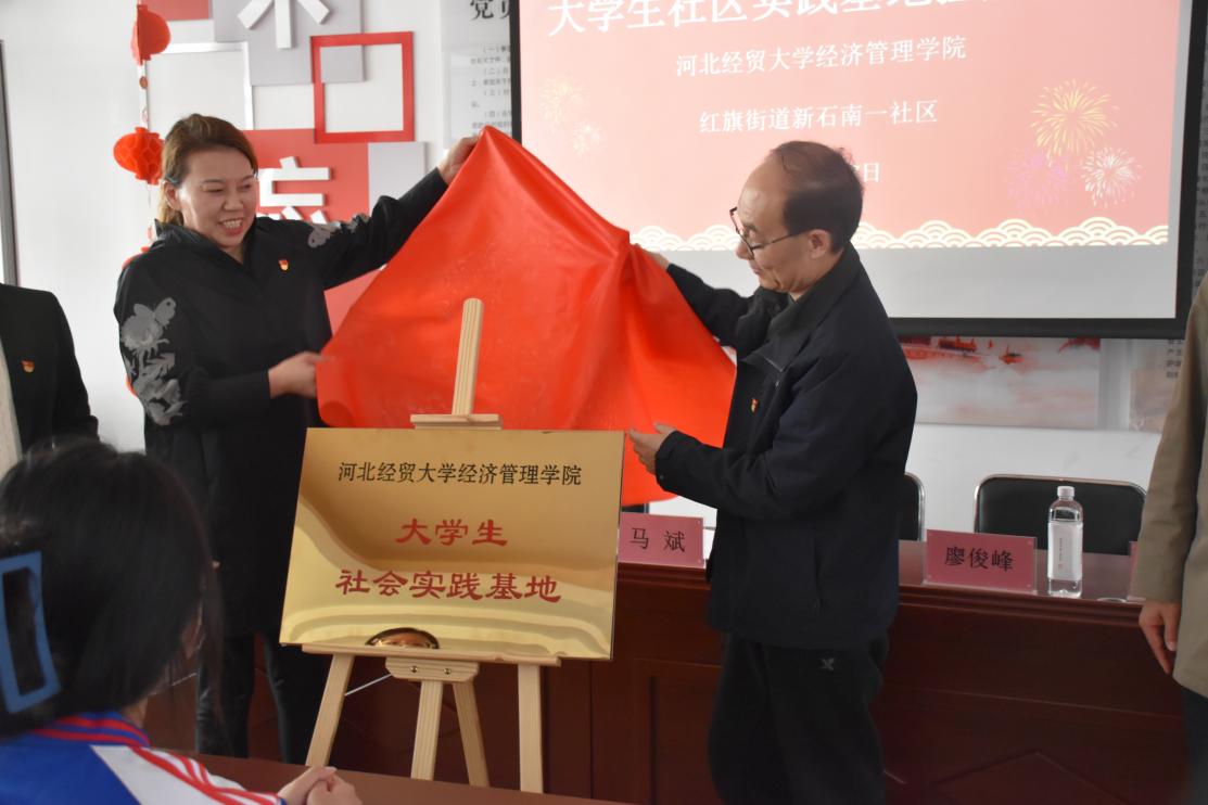 为了积极响应团中央组织大学生走进社会基层的号召,3月7日下午,Beat365官网与石家庄市桥西区红旗街道举行大学生社会实践基地揭牌仪式。石家庄桥西区红旗街道党工委书记冯晓芬,学院党委书记马斌,会计系党委书记廖俊峰,会计系党委副书记张艳敏,参加了揭牌仪式,活动由新石南一社区党委书记赵媛主持。