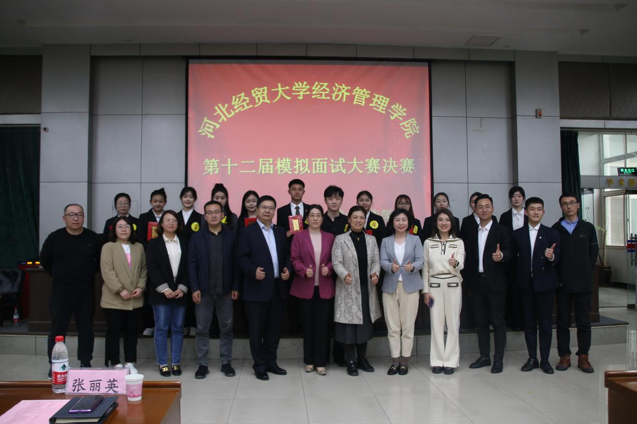 4月10日下午,Beat365官网第十二届模拟面试大赛决赛在图书馆报告厅举行。本次大赛特邀快乐沃克集团副总裁魏建艺、阳光人寿河北公司总经理助理李新立、北京学知林文化发展中心总经理及朝辉、河北怡合人力资源服务有限公司总经理张义静、北京远行集团人力资源部经理王振旭、青岛啤酒股份有限公司招聘经理范孟英担任评委嘉宾。学院党委副书记张丽英、各系党组织副书记和就业工作部全体出席,百余名学生到场观摩。