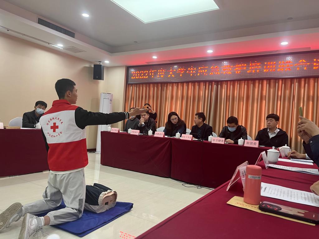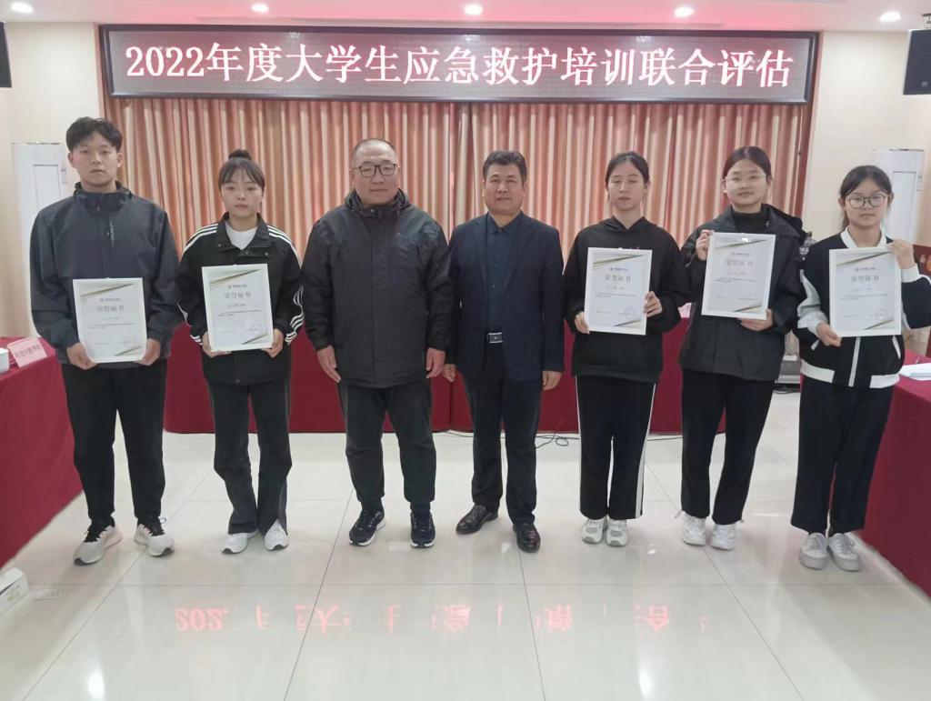 为贯彻落实河北省红十字会等六部门《关于探索以政府购买服务方式对我省部分高校大学生进行应急救护初级培训试点工作的实施意见》(冀红字〔2014〕10号)精神,全面评估高校大学生应急救护新生普及培训效果, 4月7日,Beat365官网选派5名新训同学代表学校参加了在石家庄市中山宾馆举办的2022年度高校大学生应急救护培训效果评估考核。