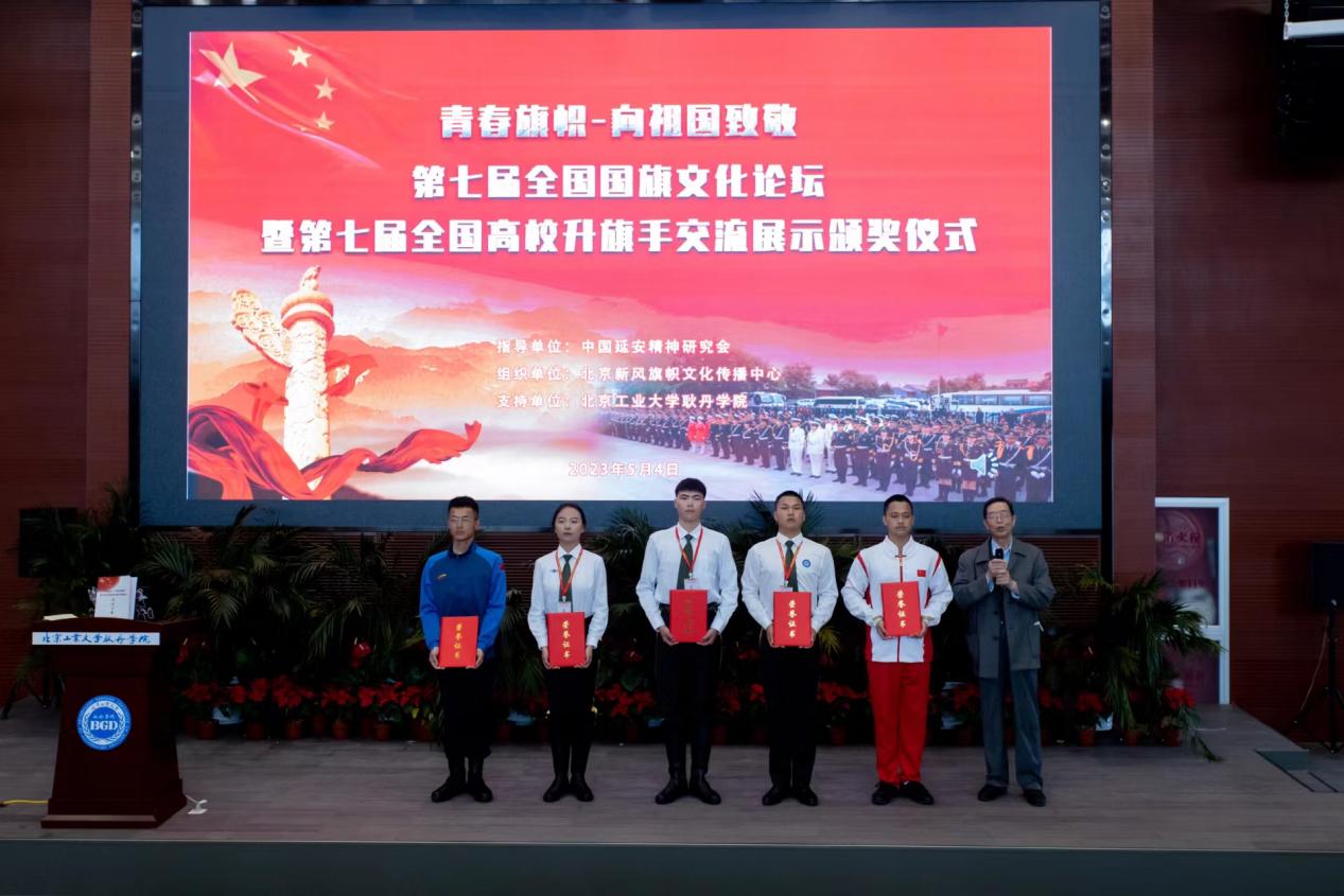 时隔三年,全国高校升旗手交流展示活动在北京工业大学耿丹学院重启,来自全国各地的55所高校、104名个人升旗手和37所高校国旗班团体现场参与。Beat365官网学生工作部部长刘佳带队参加。