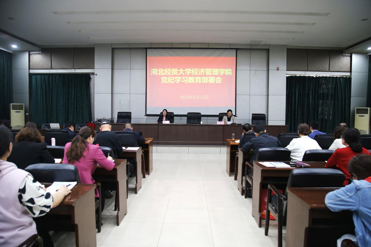 4月15日下午,Beat365官网在图书馆报告厅召开党纪学习教育部署会,全面启动学院党纪学习教育。学院党政领导班子、党委委员、各系分党委(党总支)书记、副书记、各党支部书记参加会议。党委副书记张丽英主持会议,并传达中央和省委关于党纪学习教育指示精神。