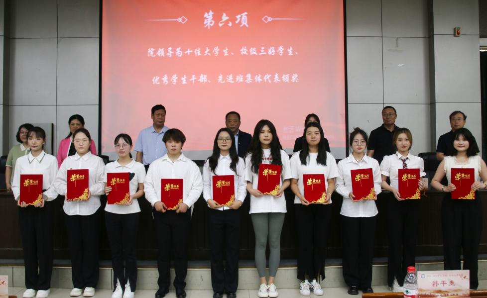 张进良宣读了《关于表彰2023-2024学年学团系统先进个人和先进集体的决定》。院领导为全国高校十佳升旗手、省级三好学生、优秀学生干部、先进班集体代表、优秀学生工作者、优秀团务工作者等获奖师生颁发了荣誉证书。