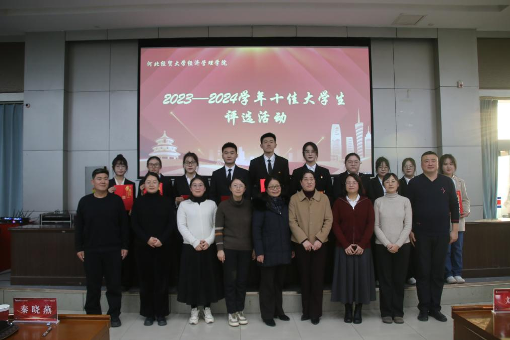 最终管理系胡馨丹、程祎婷,信息系窦宇锟、张祖阔,商务系赵妍、徐月佳、王茗可,经济系何心钰,文法系颜如婷,会计系李依凡凭借个人出色表现,获得“十佳”优秀大学生荣誉称号。