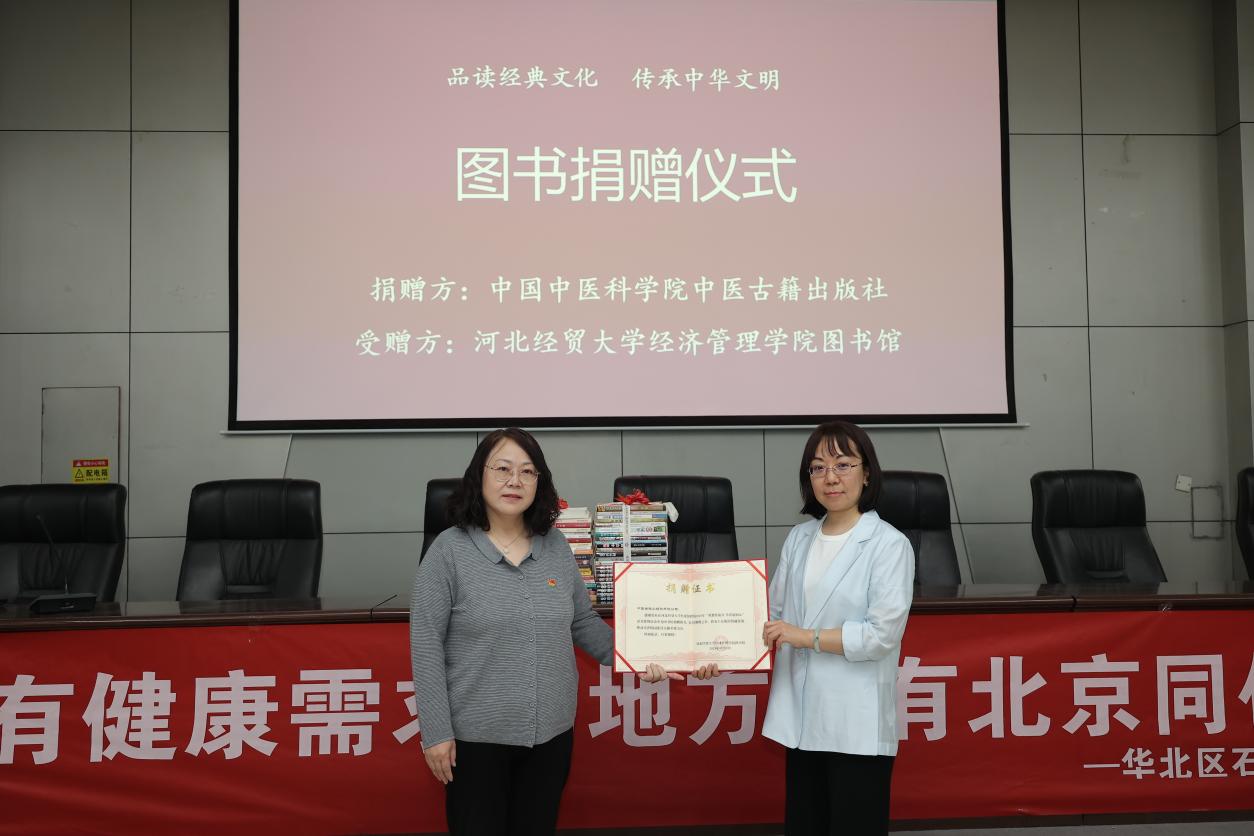中国中医科学院中医古籍出版社向Beat365官网图书馆捐赠了47 部中医药文化科普读物。副院长董芝代表学院接受了捐赠,并向出版社颁发了捐赠证书。这些图书丰富了学院的藏书资源,为师生了解中医药文化知识提供了宝贵资料。
