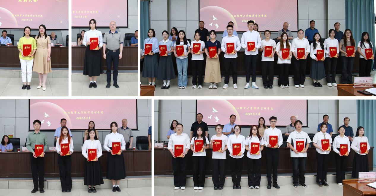 院长李大庆宣读了《关于表彰2024-2025学年学团系统先进个人和先进集体的决定》。院领导为管理系青益行志愿服务团队、第30届北京世界旗帜学大会优秀志愿者、省级三好学生、优秀学生干部、先进班集体代表、优秀学生工作者、优秀团务工作者、大学生自强之星、最美服务育人者等获奖师生颁发了荣誉证书。