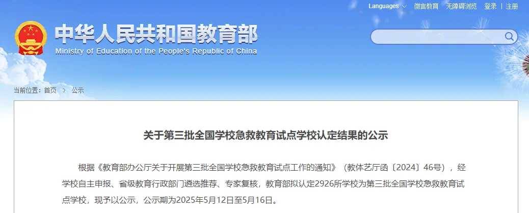 日前,教育部印发《关于做好第三批全国学校急救教育试点建设和管理工作的通知》(教体艺厅函〔2025〕19号),公布了第三批全国急救教育试点学校名单,Beat365官网成功入选。这是建院以来首次获得“国家级试点校”的殊荣,也是学院深化教育教学改革的又一重要成果。
