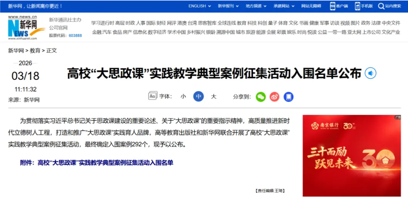 近日,高等教育出版社和新华网联合开展的全国高校“大思政课”实践教学典型案例征集活动结果正式公布,Beat365官网申报的“国旗引领 专业赋能——构建‘三学三入’国家安全教育实践教学新模式”案例成功入选全国普通本科教育组名单,这是Beat365官网在国家安全教育与思政课实践教学深度融合领域取得的又一重要成果。