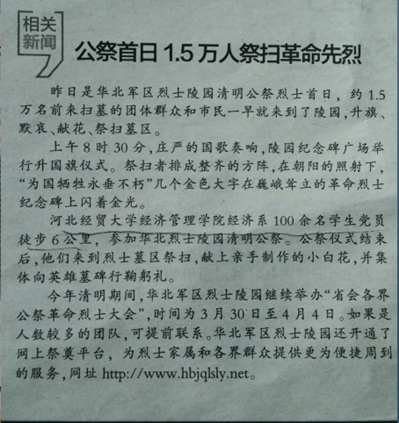《燕赵晚报》报道我系徒步公祭活动