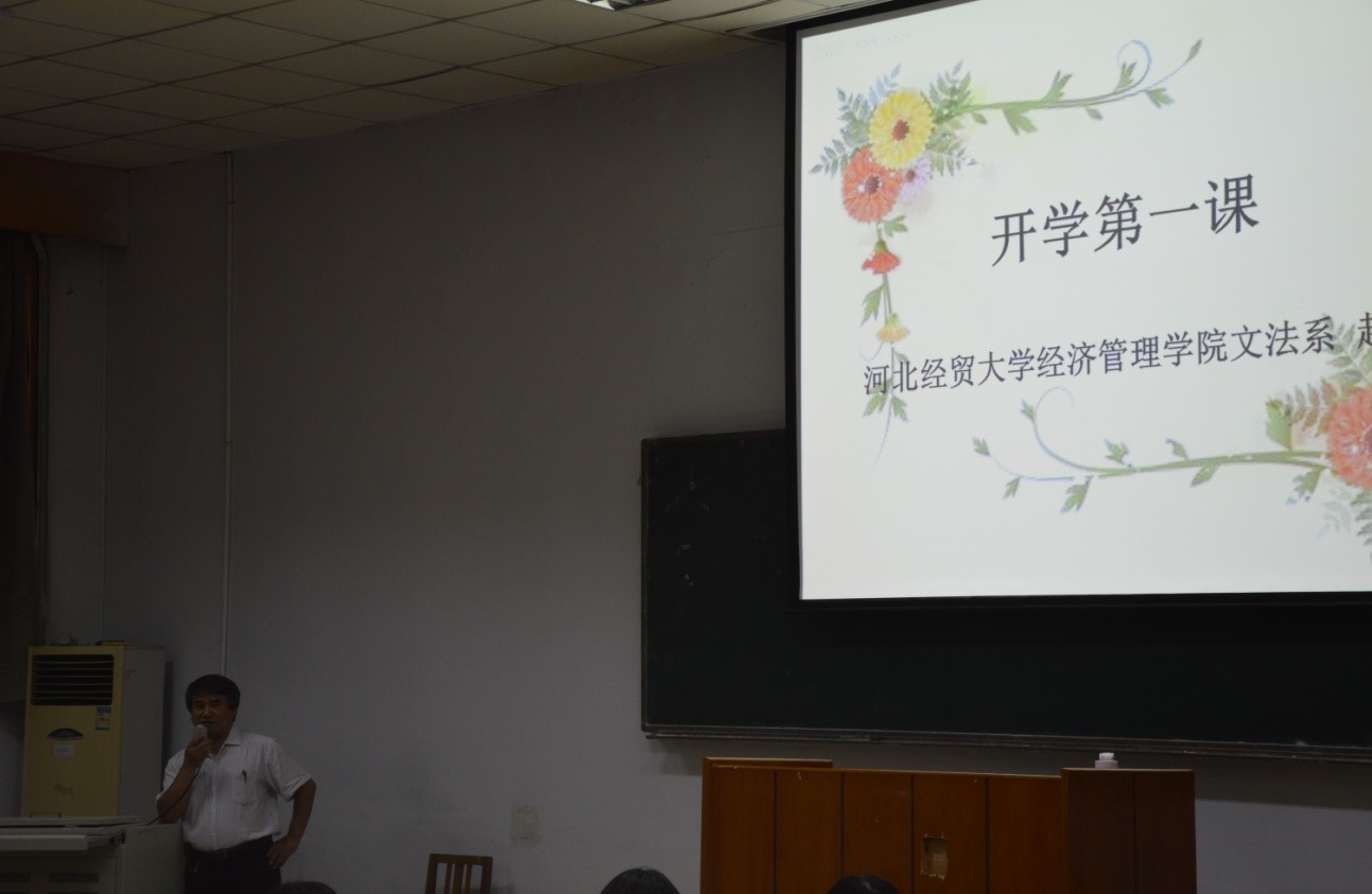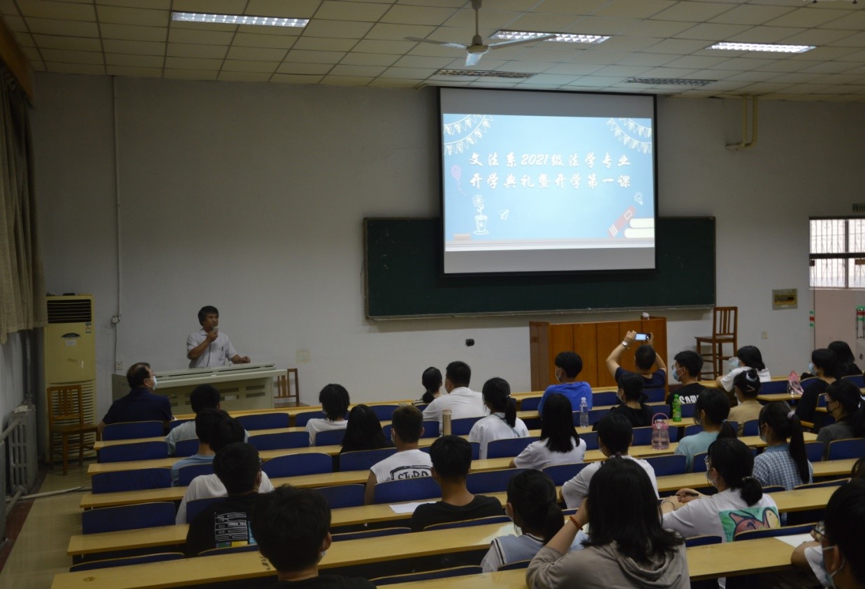 开学典礼结束后,赵占亚讲授开学第一课。他以“哥俩看马戏”的故事入手,就“大学如何上”这一问题进行详细解读,警醒同学们,不要浪费学校的宝贵资源,不要在最好的位置上沉沉睡去,不要在最好的年纪选择安逸。赵占亚主任送给2021级法学专业新生“人品、健康、奋斗、理想、吃苦、自律、热爱、读书”八大关键词,希望同学们能够在未来四年的大学生活中厚植爱国情怀,树立理想信念,赓续吃苦精神,强化自律意识,锻造强健体魄,点燃奋斗激情,珍惜宝贵时光,立志发奋成才。