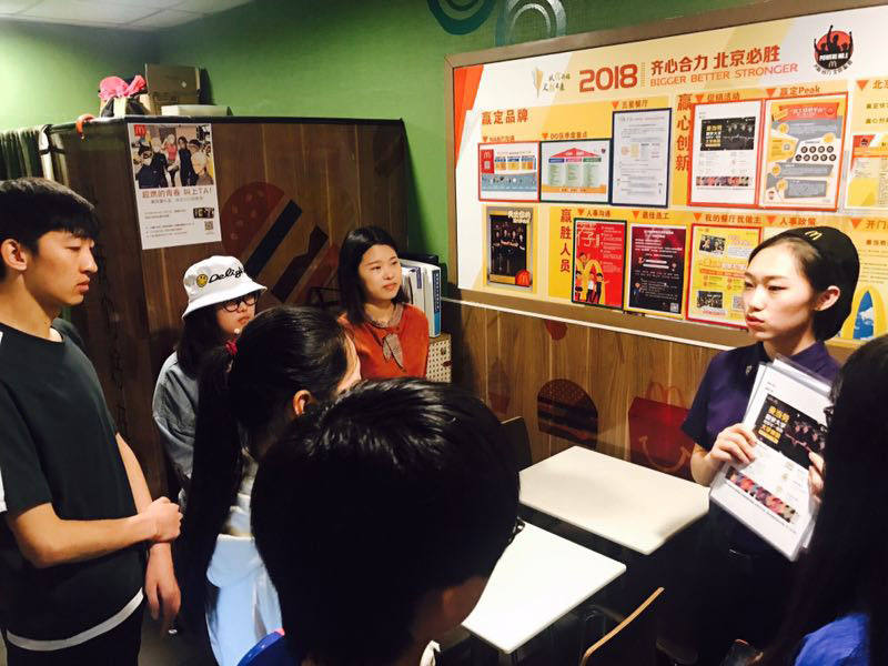 为提高同学们的实践能力,激发他们的学习热情,5月20日下午,在张艳敏和邓怀宇老师的带领下,会计系20名同学赴北京麦当劳食品有限公司万达广场店进行了参观学习。