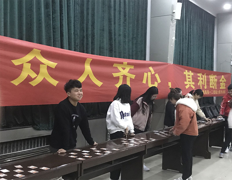 活动历时三个小时,共分“反应能力大考验”、“团队协作大考验”和“智力与团结的双重考验”三大板块,其中包含“颠三倒四”、“七上八下”、“十五的月亮十六圆”等近十个小单元。两个班的同学被分成六组,大家积极参与、相互协作,在此起彼伏的欢呼声中顺利完成了各项考验。