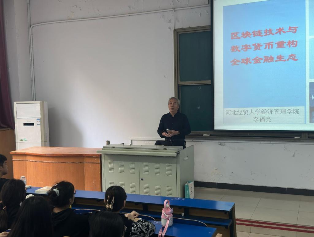 讲座伊始,李教授引导同学们了解区块链的定义及其内涵,并结合当前数字金融发展趋势剖析了区块链的当下和未来。紧接着为同学们介绍“挖矿”,即用计算机来解决数学难题,有助于激发探索与创新意识。然后以数字货币引出“天下的每一分财富,都将暴露在众目睽睽眼里”的论述。最后以数字化重塑全球金融生态问题启示同学们重视国家问题、关注政治时事。
