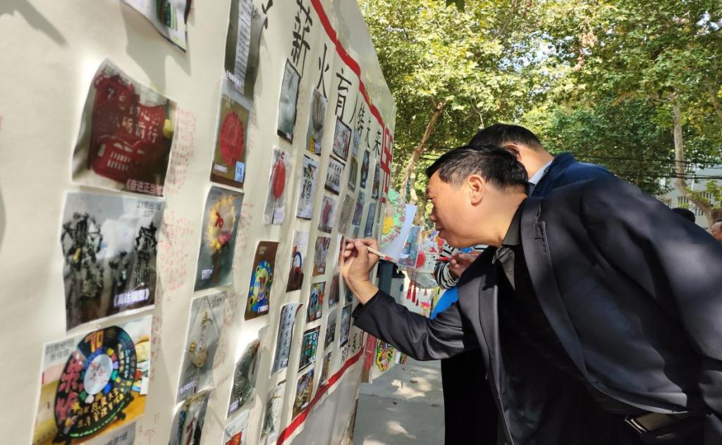 活动现场热闹非凡,过往的师生纷纷驻足观赏,并被所展出的优秀作品吸引,志愿者们向他们详细讲述活动规则,并引导他们积极参与投票,同学们还拍照留念以表达对所投作品的喜爱。