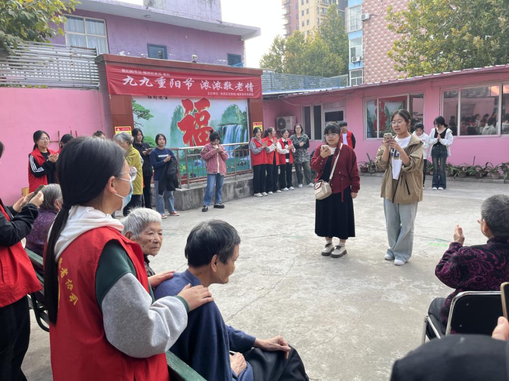 为弘扬中华民族孝亲敬老的传统美德,在学生中营造养老、孝老、敬老的良好氛围,在重阳节期间,管理系开展了一系列敬老活动。