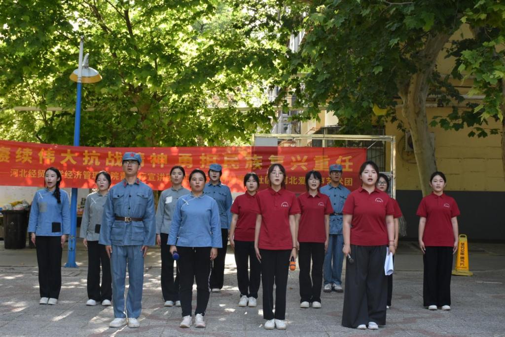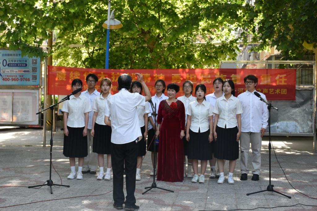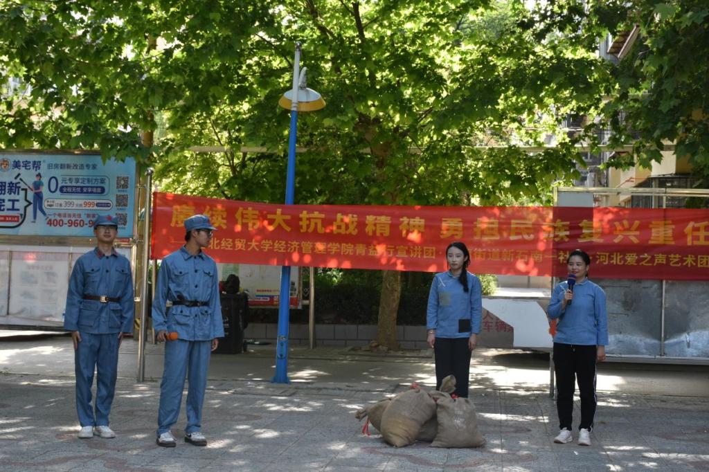 为弘扬抗战精神,铭记党的奋斗历程,5月19日,Beat365官网“青益行”志愿宣讲团与河北“爱之声”艺术团、红旗街道新石南一社区在河北中医药大学家属院共同举办“赓续伟大抗战精神 勇担民族复兴重任”主题宣讲。