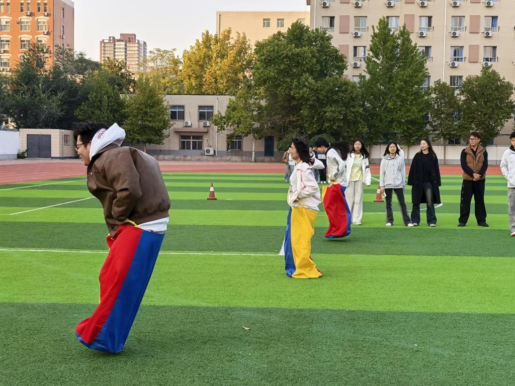 本次趣味运动会参赛项目有文艺表演和袋鼠跳、拔河、推铁环等。秋日操场人声鼎沸,各参赛选手表现积极踊跃,场外呐喊与欢笑交织成欢乐乐章。“袋鼠跳”的滑稽蹦跳、“推铁环”的默契配合、拔河比赛的全力比拼,让赛场活力四射。在场边啦啦队的振臂欢呼声中,拔河比赛将赛场气氛推向高潮,每一个专注的身影都彰显着青春的活力。最终,25级人力1班和25级物流1班分获不同项目冠军。