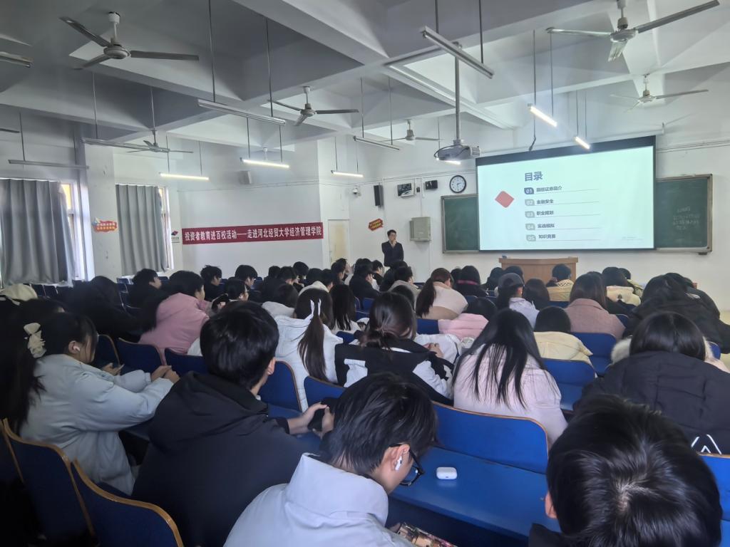 为深入贯彻国家将投资者教育纳入国民教育体系的部署要求,切实强化高校学生金融素养与风险防范能力,12月8日,经济系联合国信证券河北分公司成功举办“投资者教育进百校——走进河北经贸大学经济管理学院”专题活动,近150名学子齐聚现场、共学共进。