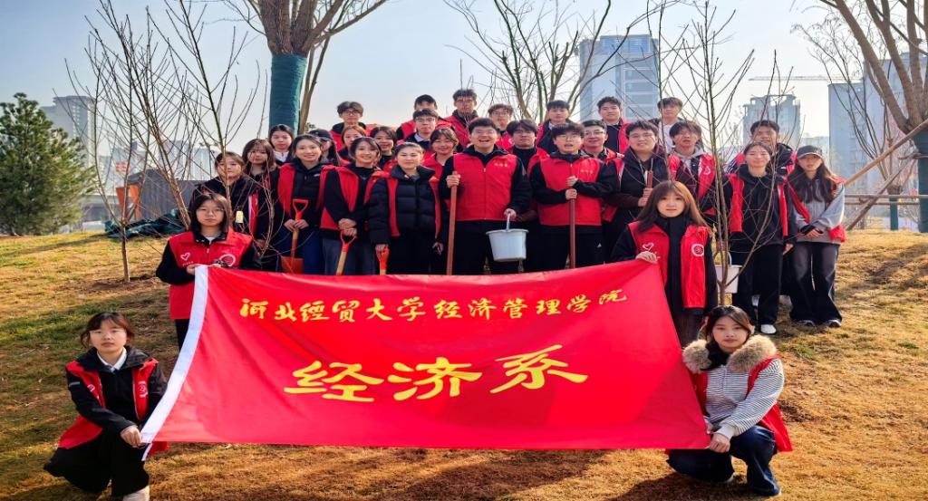 为深入践行生态文明理念,弘扬劳动精神与志愿服务精神,引导青年学子以实际行动助力城市绿色发展,3月15日,经济系组织33名学生代表前往石家庄高铁片区观宸公园开展义务植树活动,用青春汗水为城市添绿增彩。