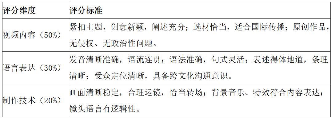 3.视频作品语言为英语,须配中英双语字幕,视频配音必须由参加活动的学生自行完成(不可使用人工智能语音、剪辑软件字幕配音等)。可适当增加背景音乐,人员可选择出镜或不出镜,字幕、语言表述需规范、准确。如利用多段视频素材的,需加工、剪辑合成一段最终版视频后参评。