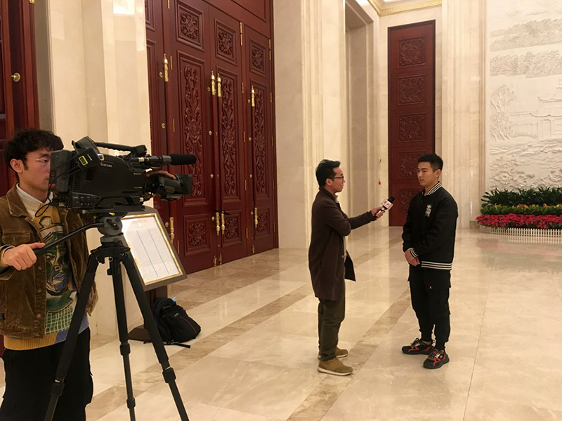 学生郑敬禄接受河北广播电视台记者采访