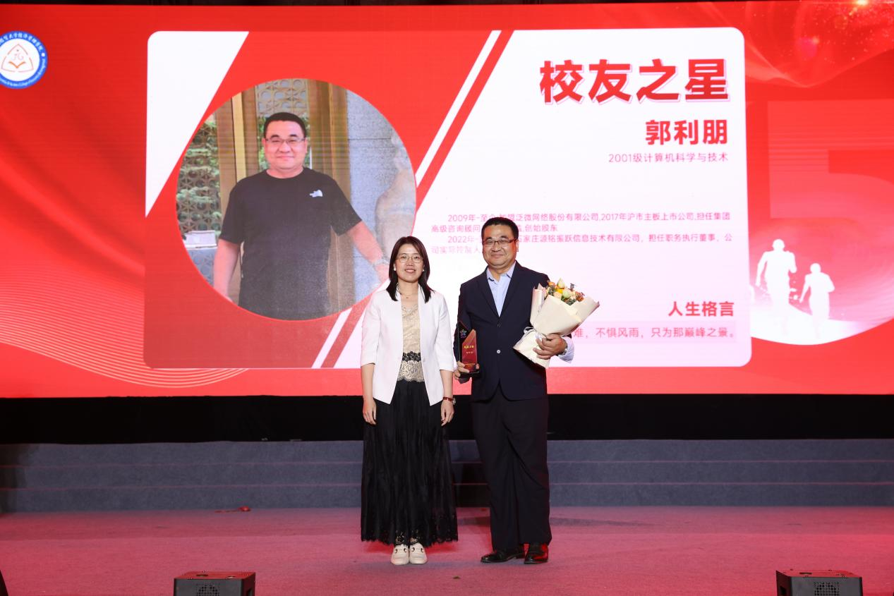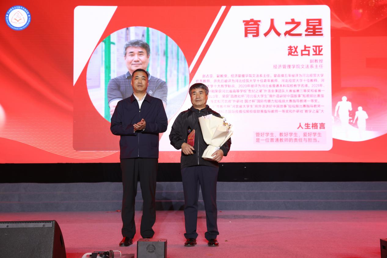 “星光工程”颁奖仪式是晚会中的重磅节目,众多优秀经管学子经过层层选拔,最终评选出经济之星何心钰、商务之星李佳林、文法之星马晓晴、信息之星王峥、管理之星胡馨丹、会计之星张利,管理系青益行志愿服务团队荣获团队之星,现任石家庄源铭振跃信息技术有限公司职务执行董事,2001级计算机科学与技术专业学生郭利明荣获校友之星,育人之星授予文法系主任赵占亚老师。领导们为获奖者颁奖,并鼓励他们继续发扬榜样精神,带动更多的经管学子为祖国的繁荣富强贡献自己的力量。整场晚会在铿锵而坚定的手语表演《有我》中缓缓落幕。