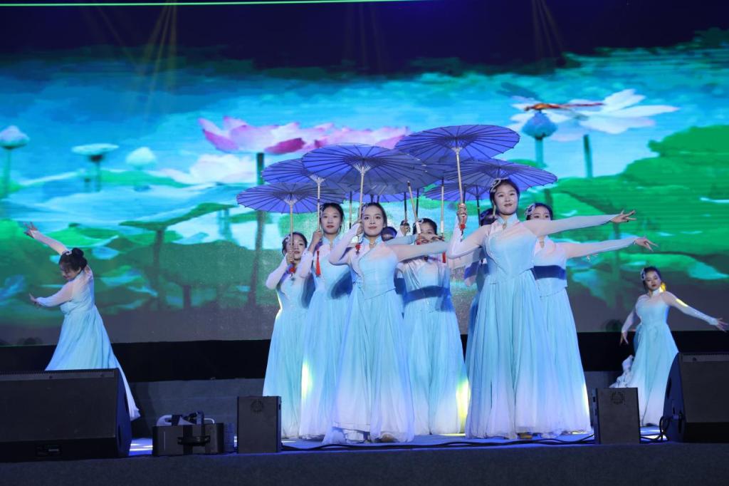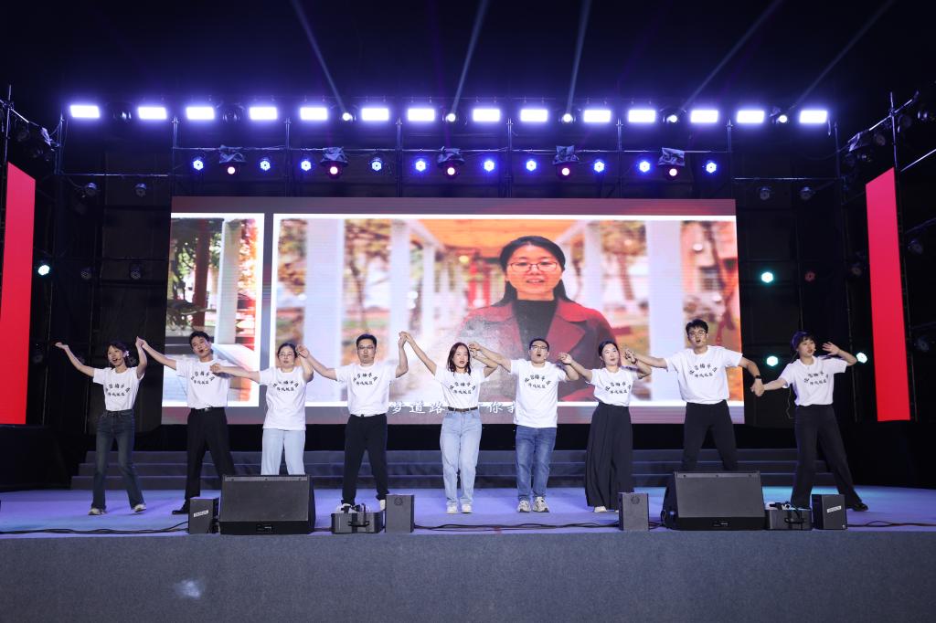 晚会以“礼赞新中国,奋进新时代”为主题,分为“新青年”“新时代”“新征程”三个篇章。文艺表演《青春》以热血激昂、逐梦前行的青春姿态首先震撼开场。合唱表演《百年守望》用激昂的歌声和饱满的热情,展现了中国共产党百年来走过的光辉历程,唱响了礼赞百年风华、奋斗崭新时代的昂扬主旋律。民乐合奏《象王行》大气磅礴,奏出了中华儿女勇毅坚韧的民族精神。情景剧《黑神话·悟空》巧妙地借神话故事,引领观众探索并展现石家庄苍岩山宝藏景点的壮丽与神秘,彰显了文化自信的强大精神力量。“他总是忘记了下班时间,从不肯把工作拖到明天,起得早睡得晚好像开挂,每天奋斗在一线战场……”新入职的辅导员集体改编的《辅导员阵线联盟》诠释了老师们对教育事业的热爱与执着,年轻而有活力的演唱赢得了在场新生的欢呼。连续多年在全国高校升旗手交流展示活动屡获佳绩的国旗护卫队带来的《经管之魂》铁骨铮铮,气宇轩昂,展现了新时代青年的风采与担当。