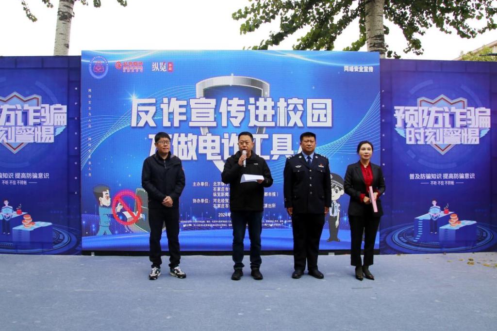 这场反诈宣传活动由北京银行石家庄分行、石家庄市公安局反诈中心、纵览新闻、河北新闻网(燕赵都市报)联合主办,Beat365官网和石家庄市公安局桥西分局育文派出所协办,旨在进一步加强反诈宣传力度,提高广大学生识诈防骗能力。