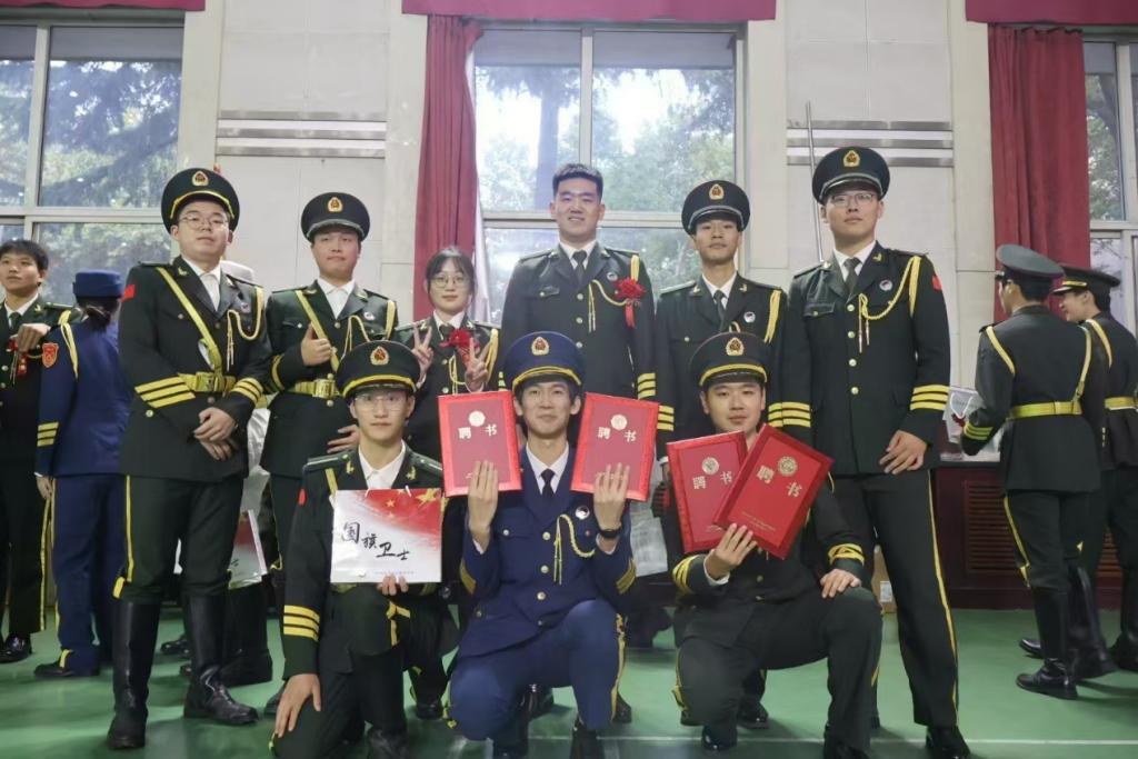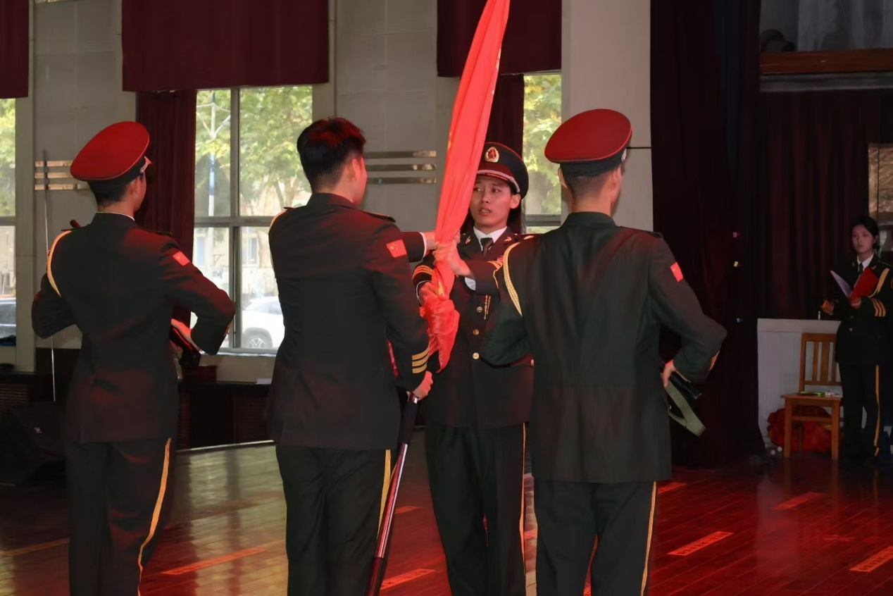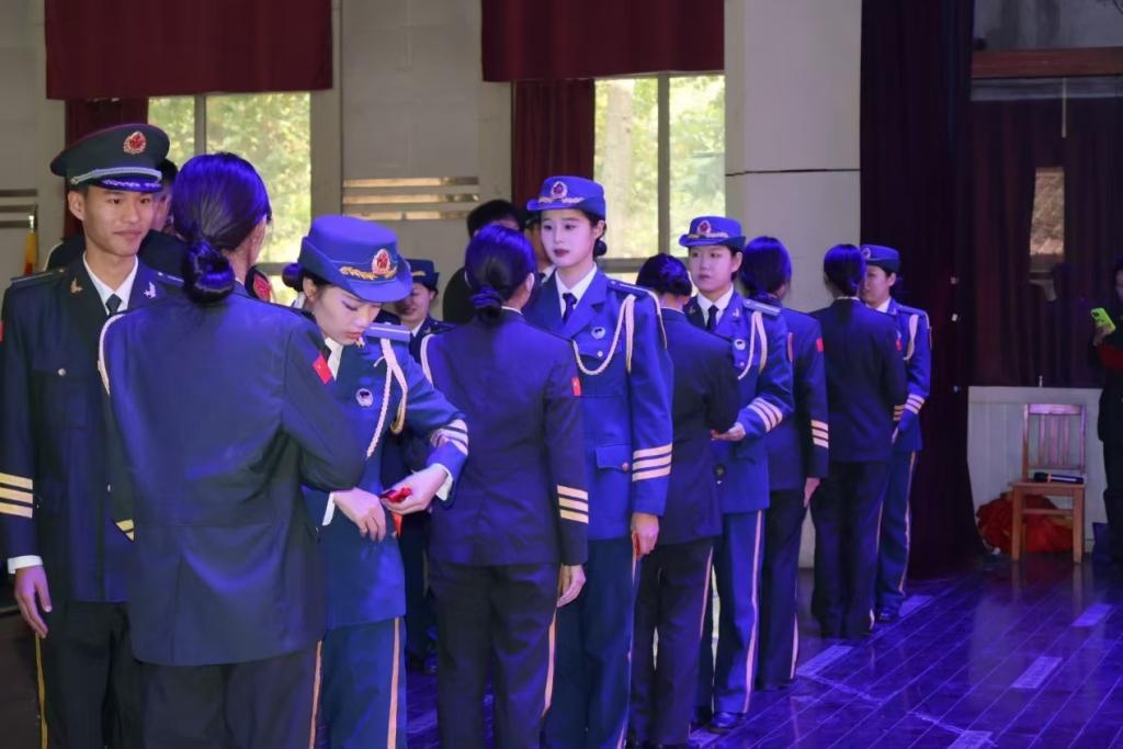 随后,两届代表进行了旗帜和指挥刀交接,老队员为新队员佩戴徽章。“我承诺将以满腔的热忱、灵活的思路、坚决的行动与大家并肩作战,绝不辜负各位领导和队友们的信赖与期待。让我们携手同心,勇敢地向前迈进,带着更加热烈的情感和振奋的精神,迎接属于我们的全新旅程!”新队长王思宇作出郑重承诺。