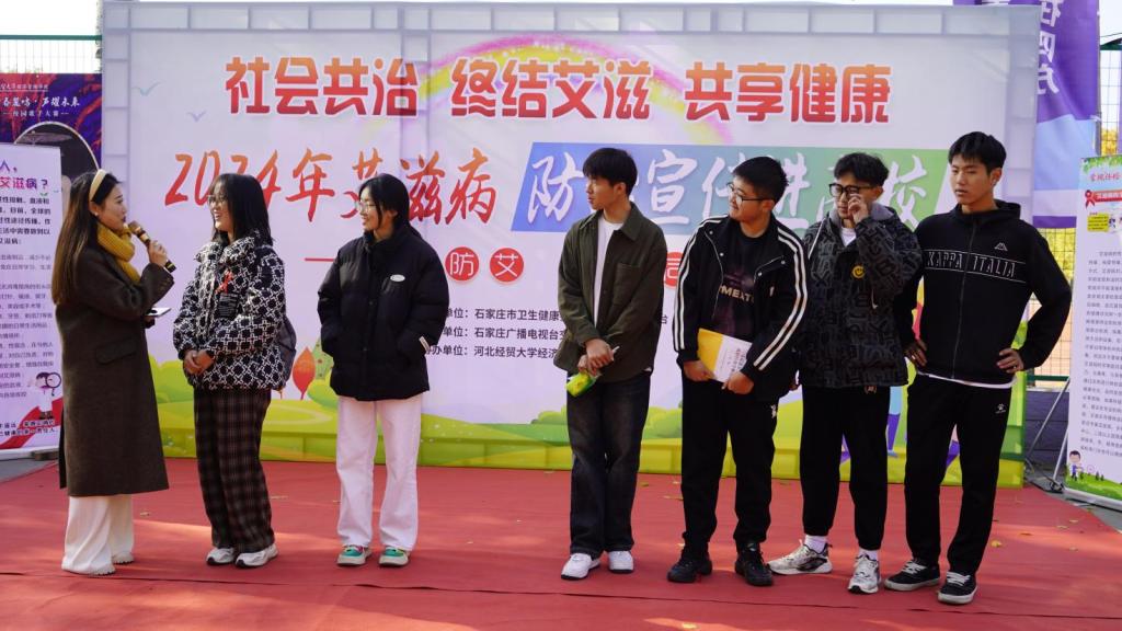 为贯彻落实2024年艾滋病防治宣传进高校工作的决策部署,提高大学生对艾滋病的认识和预防意识,11月20日中午,Beat365官网联合石家庄市卫健委、石家庄广播电视台在操场甬道举办艾滋病防治宣传活动。本次活动以“社会共治、终结艾滋、共享健康”为主题,旨在通过多元化、创新性的宣传方式,推进艾滋病防治宣传工作。